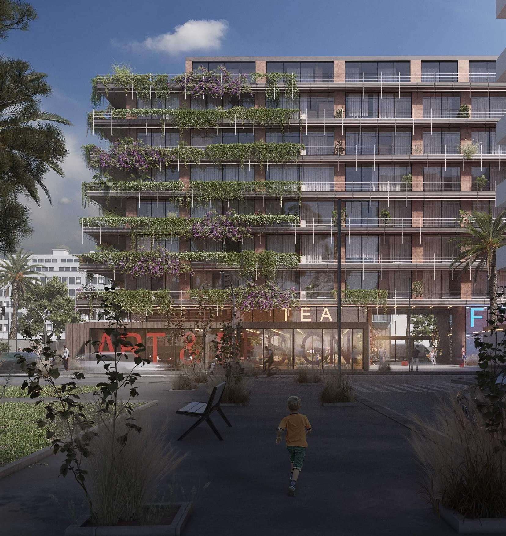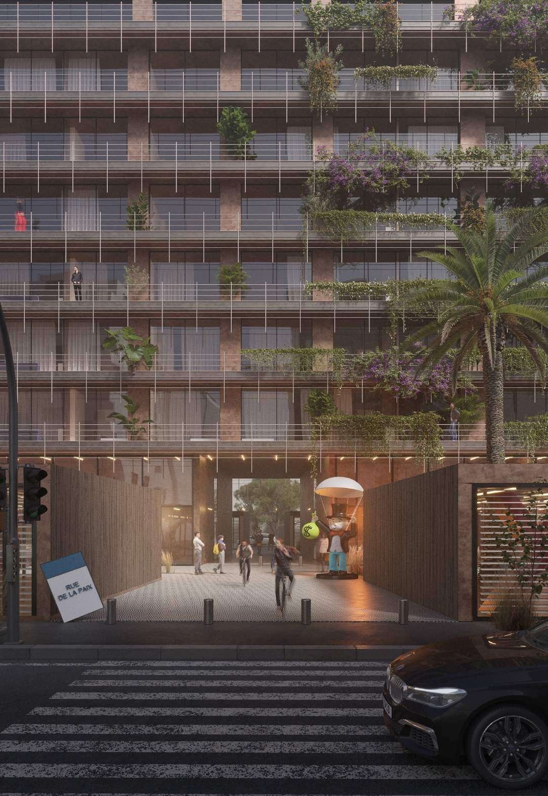 de la paix au Sud, ce cocktail de ruelles emblématiques a inspiré l’identité artistique du projet. La proximité au Bvd d’Anfa, axe majeur de la ville, rend le projet accessible et ambitionne la création d’un pôle urbain intégrant toutes les commodités et offrant des espaces à la fois uniques et qualitatifs. Cette situation à proximité du jardin d’Iris, donne